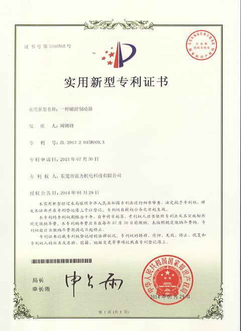 首臺使用磁滯制動(dòng)器研制成功