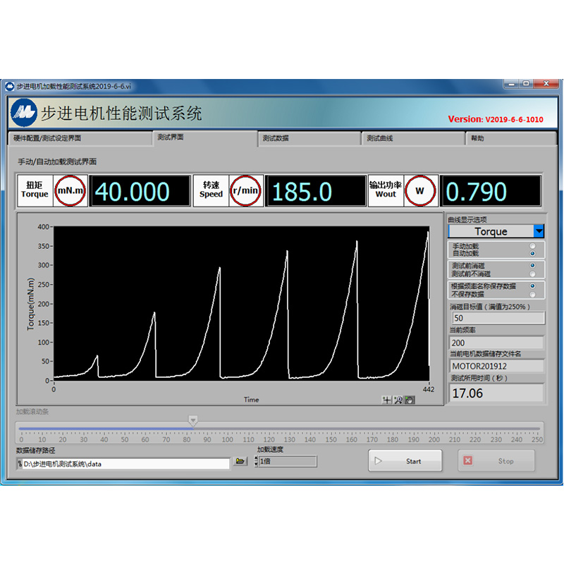 C0-MTHD- S100KT步進(jìn)電機(jī)測(cè)試系統(tǒng)用于測(cè)試步進(jìn)電機(jī)在不同頻率下的失步力矩,本系統(tǒng)實(shí)現(xiàn)了對(duì)步進(jìn)電機(jī)多種模式的控制,能夠?qū)崟r(shí)采集、存儲(chǔ)電機(jī)的電壓和電流、扭矩、轉(zhuǎn)速、功率等信號(hào),并對(duì)數(shù)據(jù)分析處理以判斷電機(jī)運(yùn)轉(zhuǎn)狀態(tài)。